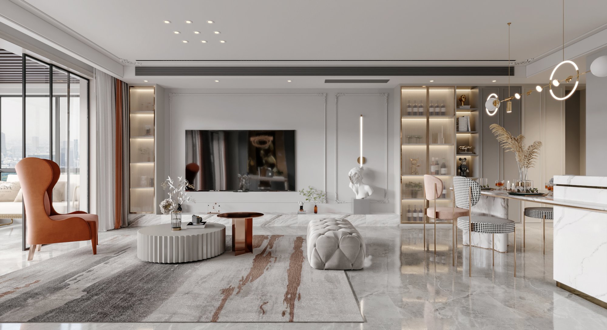 現(xiàn)代風(fēng)格設(shè)計(jì),無主燈的設(shè)計(jì)打造出一個(gè)精致的空間氛圍